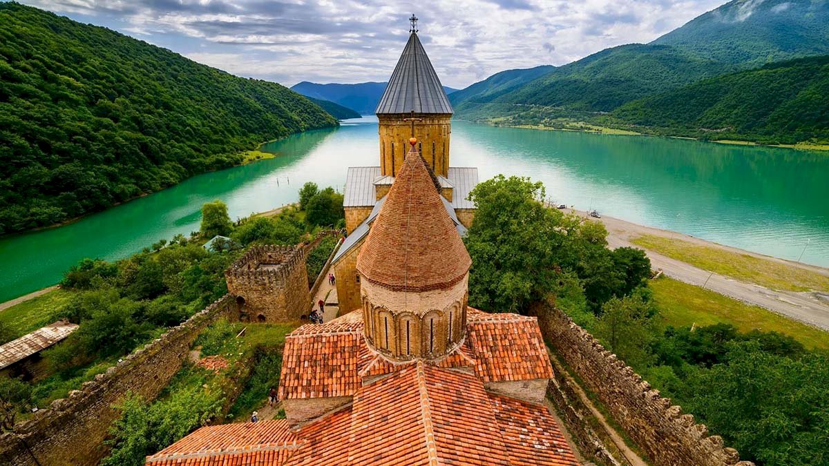 Rano przed śniadaniem, przy dobrej widoczności, krótka wyprawa 4x4 do podnóża śnieżnej góry Kazbek (5047m). Zobaczymy tam klasztor Św. Trójcy (Cminda Sameba). Powrót do hotelu, śniadanie. Powrót przez Kaukaz do centralnej Gruzji. Po drodze postoje przy naturalnych źródłach wody mineralnej oraz na platformie widokowej (2200m). Zwiedzanie XVII-wiecznego zamku Ananuri leżącego nad wielkim Zalewem Żinwalskim. Dłuższy transfer do południowej Gruzji do miasteczka Borżomi - najsłynniejszego gruzińskiego uzdrowiska. Spacer po parku zdrojowym, degustacja wody mineralnej wprost ze źródła. Możliwość zakupów na lokalnym bazarze, m. in. oryginalnych przetworów z szyszek, orzechów, rokitnika etc. Przejazd do miasta Achalcyche. Kolacja i nocleg w hotelu.