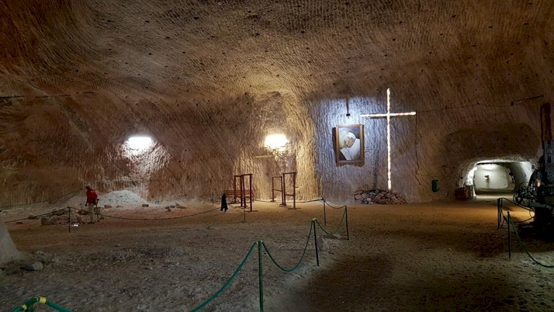 Zwiedzanie Kopalni Soli w Kłodawie - zjazd windą na poziom 600 m pod powierzchnią ziemi, przejście chodnikami do podziemnej kaplicy św. Kingi - patronki górników solnych. Obejrzenie wyeksploatowanych komór solnych oraz maszyn używanych w podziemnym górnictwie solnym.