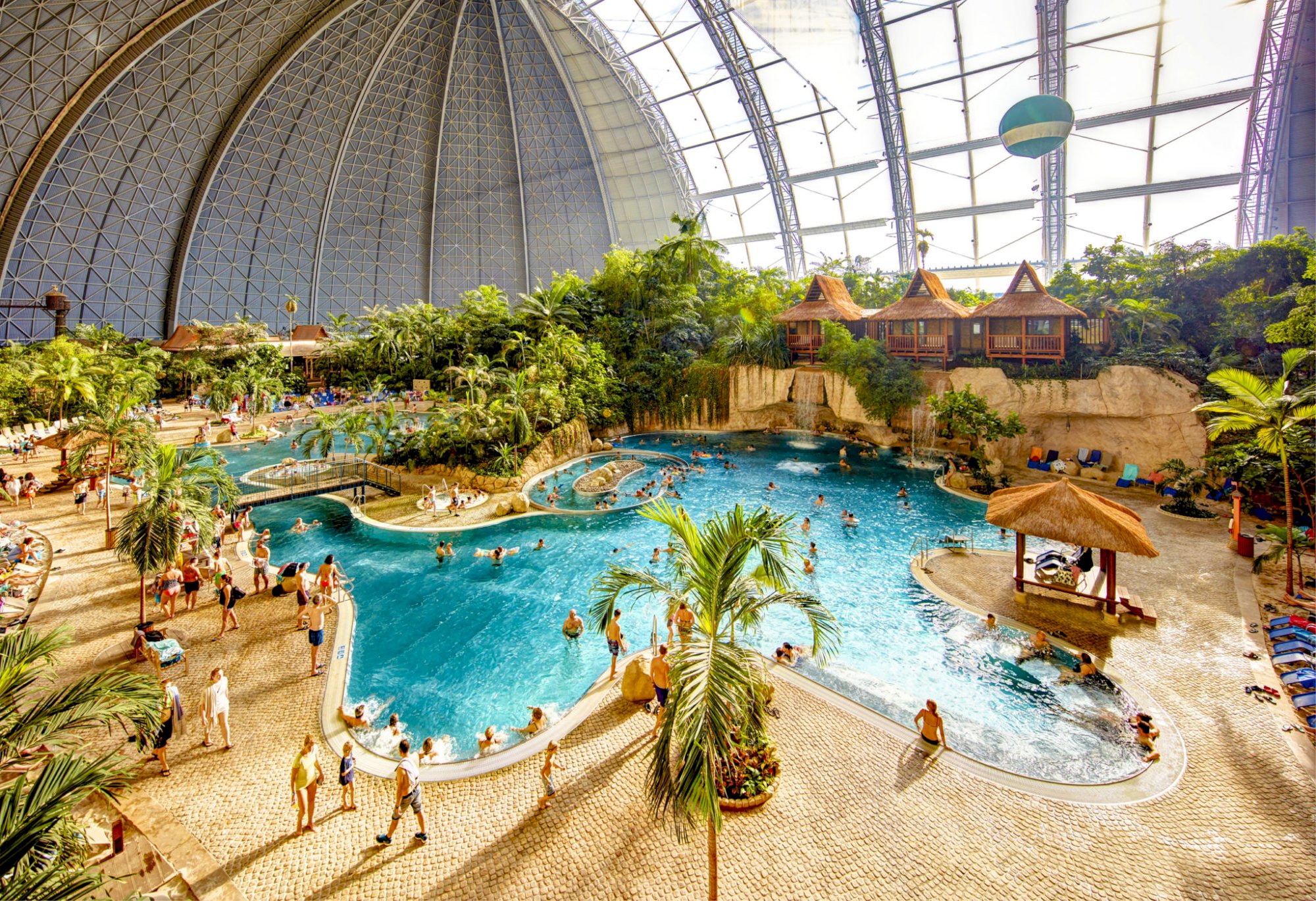 Pobyt w Tropical Islands - największym tropikalnym parku wodnym w Europie - błękitna laguna, wioski z okolic Bali, dżungla, piaszczysta plaża, groty, wodospady, jacuzzi, zjeżdżalnie wodne.